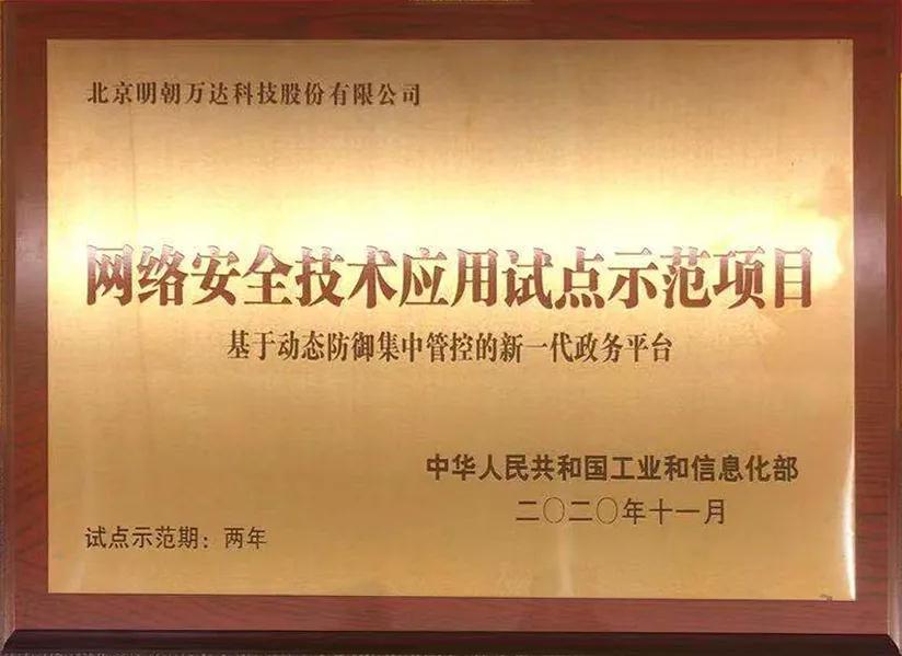 明朝万达获工信部“网络安全技术应用试点示范项目”授牌