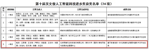 近日,被业界誉为“中国智能科学技术最高奖”的“2020年度第十届吴文俊人工智能科学技术奖”获奖名单公布。其中,由北京明朝万达科技股份有限公司(以下简称为“明朝万达”)牵头,和清华大学、国家计算机网络与信息安全管理中心共同完成的“基于数据流的一体化数据安全管理关键技术及平台应用”项目荣获“人工智能科技进步奖 一等奖”。“吴文俊人工智能科学技术奖”是我国智能科学技术领域唯一以享誉海内外的杰出科学家、数学大师、人工智能先驱、我国智能科学研究的开拓者和领军人、首届国家最高科学技术奖获得者、中国科学院院士、中国科学院数学与系统科学研究院研究员、中国人工智能学会名誉理事长吴文俊(1919年5月12日-2017年5月7日)先生命名,依托社会力量设立的科学技术奖,具备提名推荐国家科学技术奖资格,被誉为“中国智能科学技术最高奖”,代表人工智能领域的最高荣誉象征。