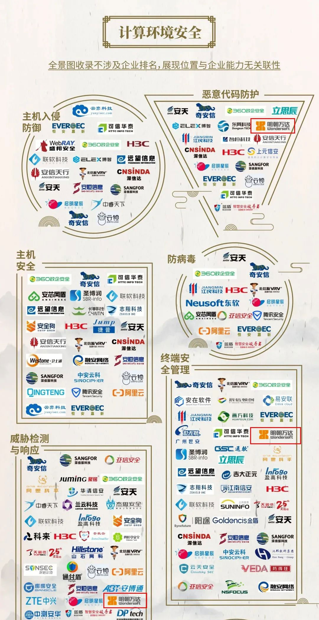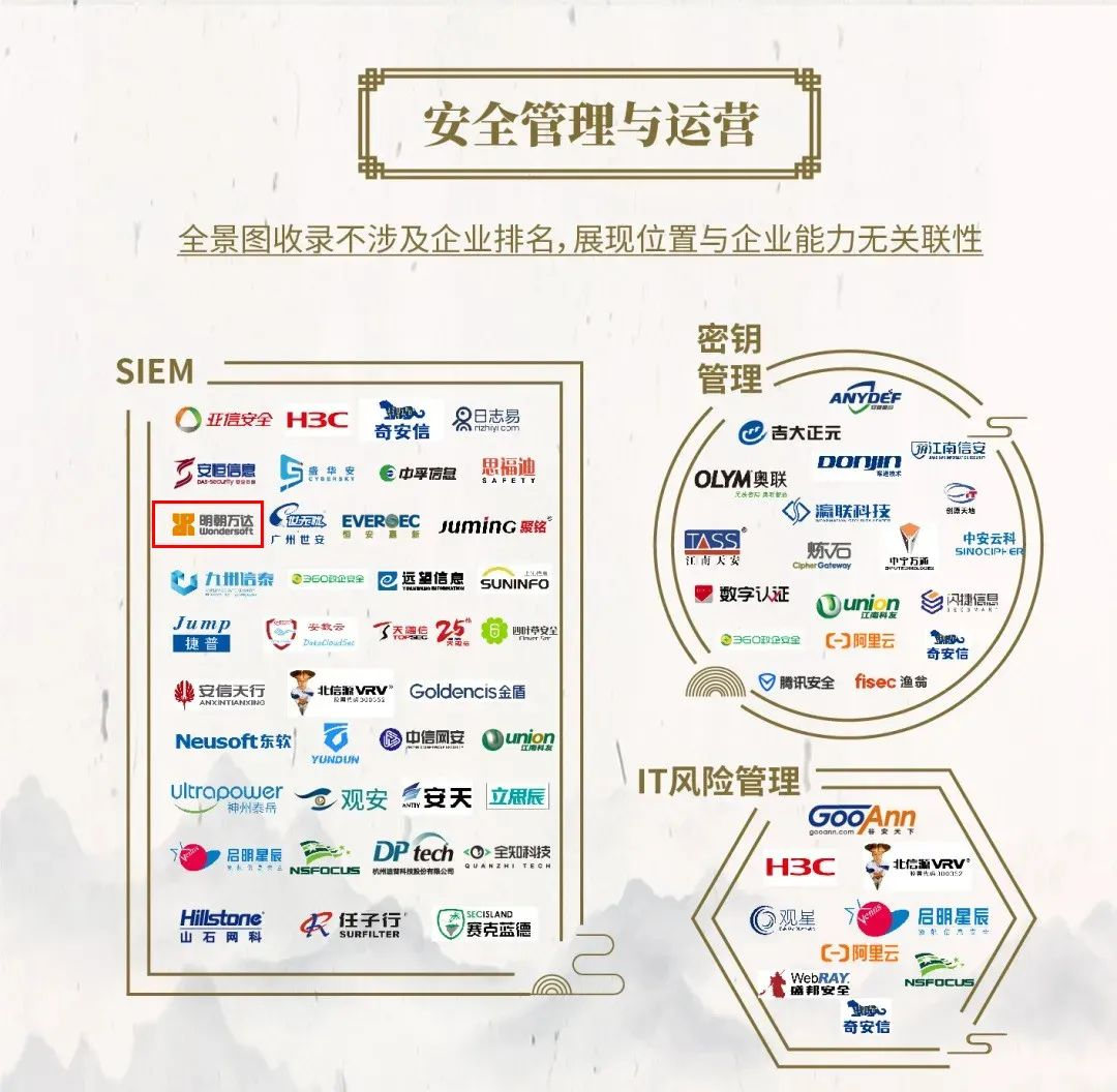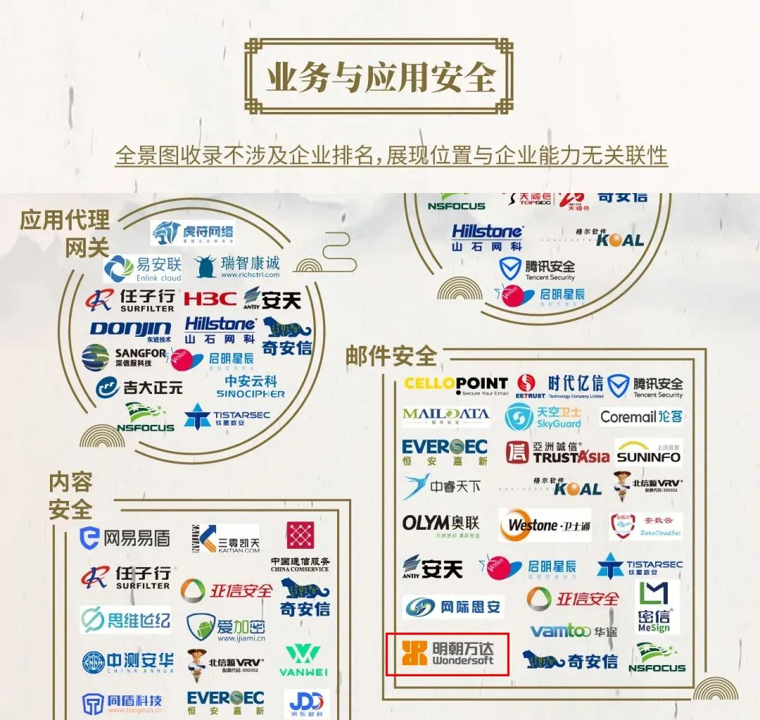 连续8次入选中国网络安全行业全景图,充分体现了业界对明朝万达在网络安全领域卓越表现的认可,肯定了公司过硬的技术创新能力和卓越的产品服务能力,也奠定了明朝万达在网络安全行业领先品牌的地位。