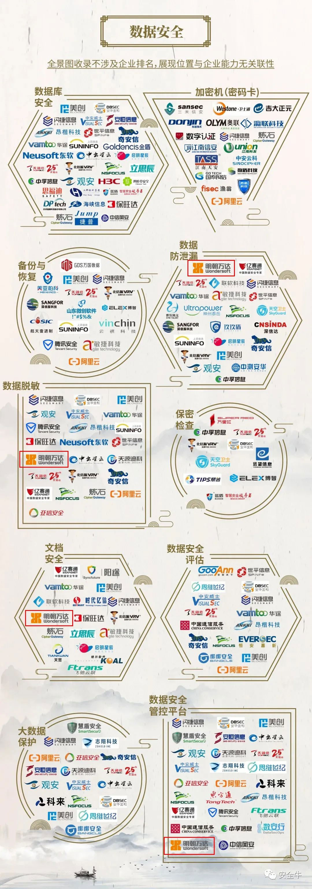 昨日,国内权威安全媒体“安全牛”发布了《中国网络安全行业全景图(第八版)》。明朝万达作为中国新一代信息安全技术企业的代表厂商,凭借过硬的技术实力和突出的市场表现,连续8次入选网络安全行业全景图。