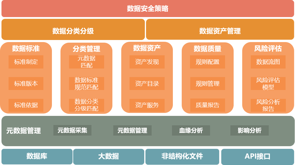 平台通过对政企元数据的采集和梳理,以及根据分类分级匹配后的结果,结合技术手段以及技术产品,生成数据安全防护策略。