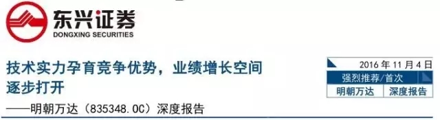 本次东兴证券发布的投资评级深度报告,深度分析国内网络安全市场及明朝万达在综合实力以及资本市场的投资潜力,给予“强烈推荐”评级是对明朝万达市场竞争实力以及综合实力的肯定。