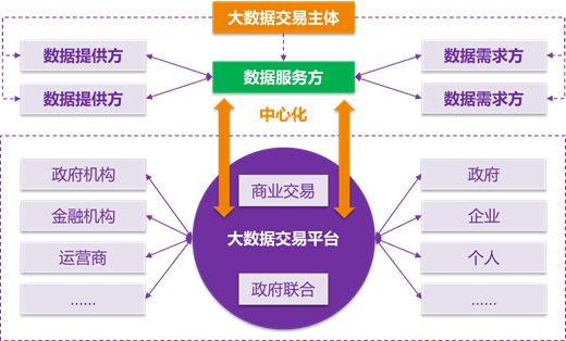 国内大数据交易平台主要可以分为两类:一类是以数据生产或数据服务类企业为主导、商业职能为主的大数据交易平台,另一类是政府联合其他主体投资、合作的大数据交易平台。大数据交易平台大多采用中心化系统结构,大数据交易主体包括数据提供方、数据服务方、数据需求方,数据提供方很少直接面对数据需求方,数据服务方在整个大数据流通和交易过程中,中心支配地位突出。