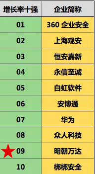 《50强》调查于2015年首次启动,并于2016年改为上下半年两次调查,至今已发布了四期,且本次调查首次将创新力和增长率两大指标体系的前十强排名单独列出。明朝万达凭借领先的技术优势以及专业的服务能力,均榜上有名。本次《中国网络安全企业50强》(2017年上半年)评选,明朝万达综合排名提升4个名次,并入围“企业增长率十强”榜单。