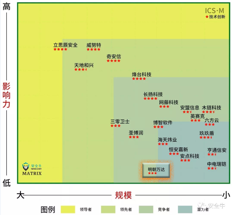 近日,安全牛发布了《中国网络安全细分领域矩阵图》,明朝万达凭借2018年网络安全市场的优异成绩,从众多安全厂商中脱颖而出,实力上榜中国网络安全细分领域矩阵图。