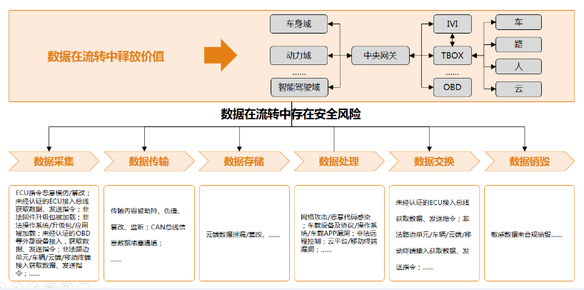 在智能网联汽车信息安全方面,随着汽车智能化、网联化和电动化程度的不断提高,面向V2X车联网场景下的应用范围不断扩大,带来的安全隐患也日益明显。尤其是当车从现在的单一车发展到无人驾驶,智能网联汽车车载终端各种入口更加容易被攻击。同时数据集中存储在数据服务平台,一旦有不法入侵窃取数据,则会造成个人信息的泄漏,甚至对行车构成威胁。因网络安全事件的不断显现,用户生命财产安全受到严重威胁。车联网产业链长、防护环境众多,网络安全问题复杂,同时车联网面临网络安全需求复杂,网络安全防护手段建设缺乏针对性和系统性问题,结合国际网络安全整体形势,强化车联网网络安全保障已成为当务之急。