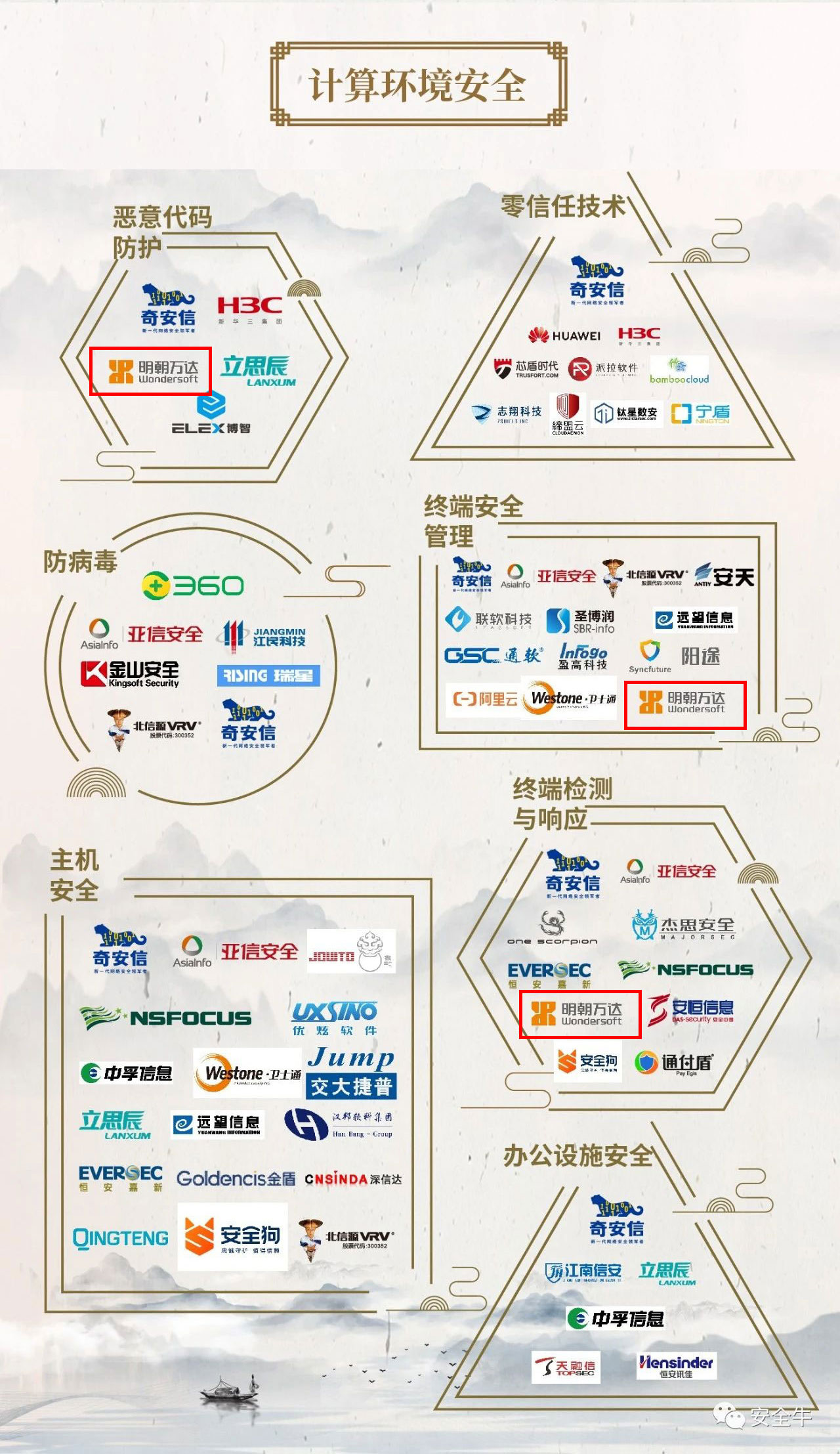连续七次入选网络安全行业全景图,是对明朝万达在计算环境安全、数据安全、通信网络安全、应用安全、智能安全、移动安全6类一级安全领域领域综合实力的充分肯定,体现了明朝万达技术和产品服务创新的实力,也肯定了明朝万达在网络安全行业发展的领先地位。对企业用户选择具有重要参考价值。