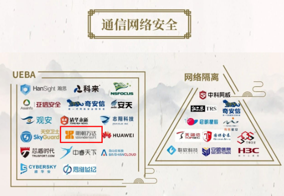 明朝万达本次入选 13类二级细分领域,覆盖计算环境安全、数据安全、通信网络安全、应用安全、智能安全、移动安全 6类一级安全领域。与2019年相比,新入选恶意代码防护、终端安全管理、终端检测与响应、数据脱敏、勒索软件防护、UEBA、网页防篡改、大数据与人工智能 8类二级细分领域。