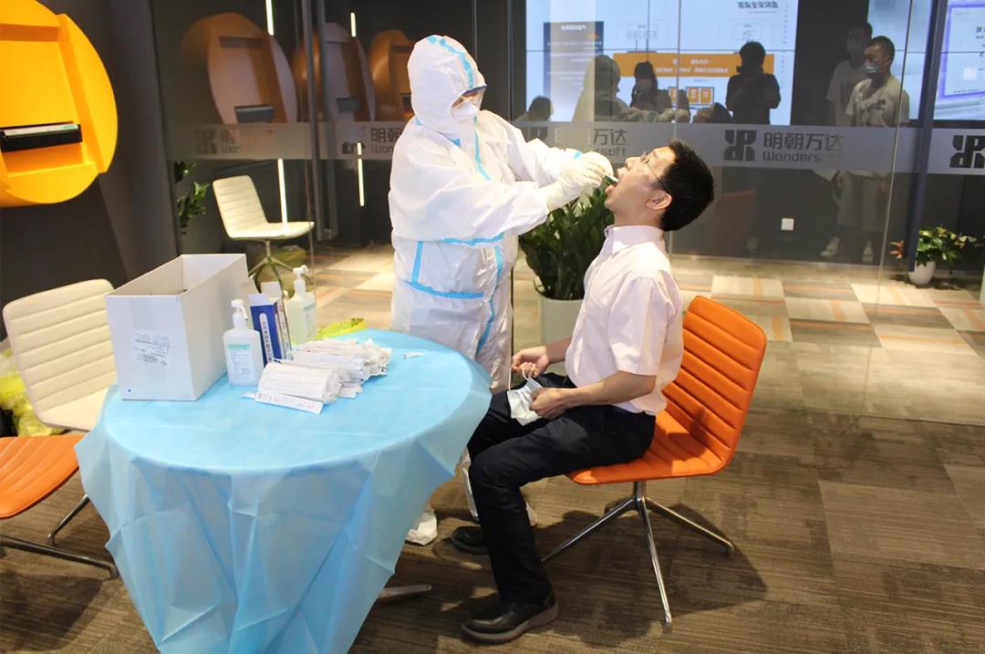 6月18日下午,明朝万达为北京全体员工安排了一次集体核酸检测。