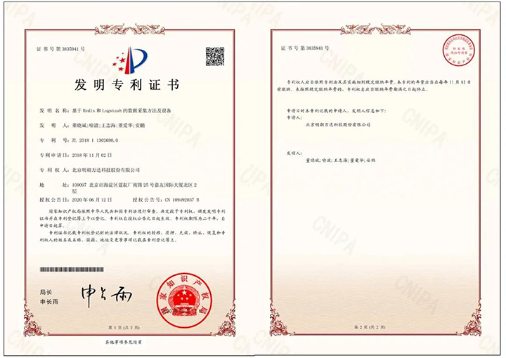 近期,明朝万达自主研发的“一种数据安全集中管控方法和系统”、“基于Redis和Logstash的数据采集方法及设备”、“一种敏感数据动态监测方法及装置”三项创新技术顺利通过了国家知识产权局的严格审查,正式获得了由国家知识产权局颁发的发明专利证书。