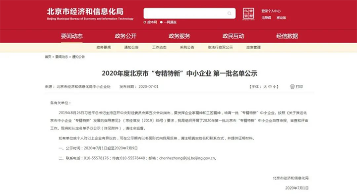 2020年7月1日,北京市经济和信息化委员会公示《2020年度北京市“专精特新”中小企业》(第一批名单),明朝万达凭借在信息安全行业的突出表现成功入选!