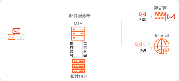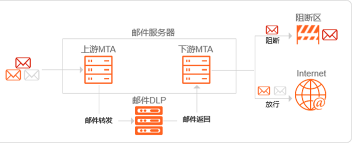 MTA级联方式是将邮件DLP逻辑串联在邮件服务器上游MTA和下游MTA之间。