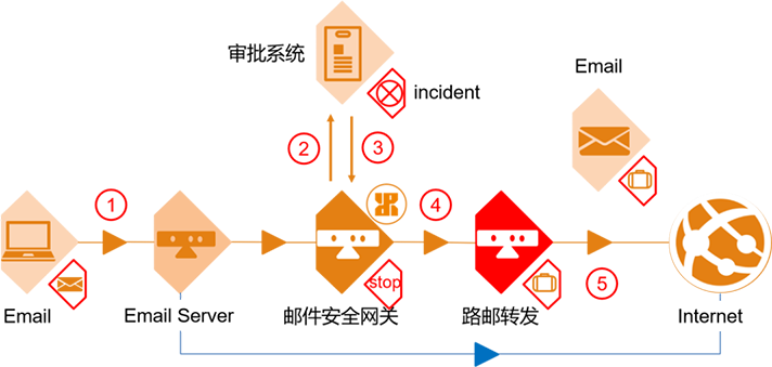 通过在银行部署邮件安全网关,对外发邮件进行敏感信息扫描,有效避免了敏感信息的数据外泄,同时对外发邮件进行加解密和审批等操作。