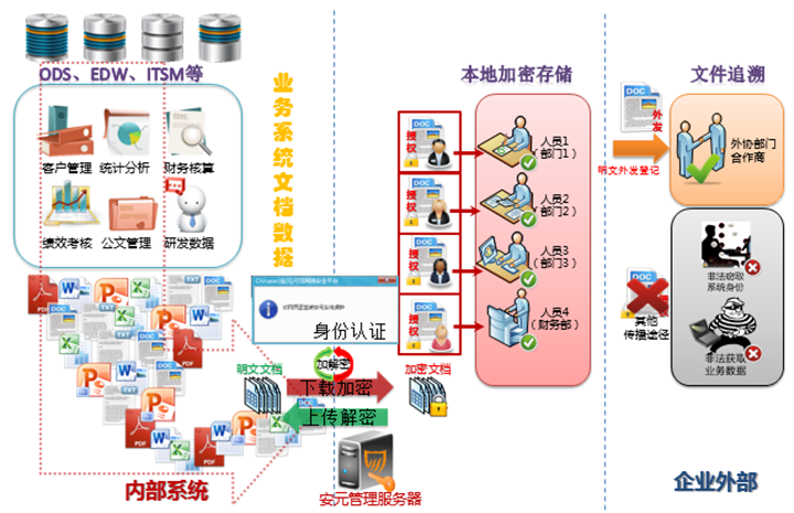 以技术手段实现对各种办公应用场景实时进行有效管控,实现对企业内所有人员办公终端及敏感信息的安全管控。