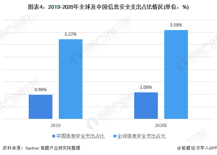 国内信息安全需求不断增长,但支出占比仍低于全球、且结构偏硬