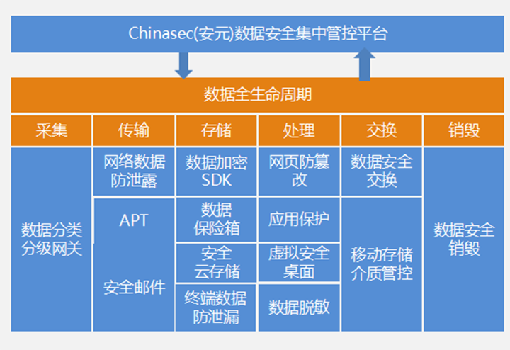 在此理念的原则指导下,明朝万达以数据安全为核心、自主可控的国密算法应用技术为基础,研发的Chinasec(安元)数据安全系列产品及解决方案,覆盖数据产生、存储、交换、使用等全生命周期重要环节,实现对服务器、数据库、PC终端、移动终端以及网络通信的全IT架构下数据安全的协同联动管理,打造企业级的数据安全防护体系。