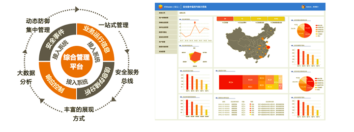 以集中管控大数据系统进行信息采集、分析、控制、展示进行态势感知,结合终端DLP、邮件DLP和网络DLP数据,通过数据构建三位一体多方面的安全防护机制,为上层决策与执行提供技术支持,提升理解分析、响应处理的能力。