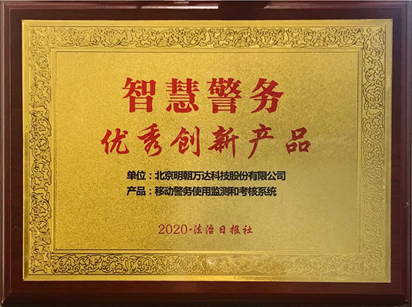 明朝万达荣获2020全国政法智能化建设“智慧警务优秀创新产品”