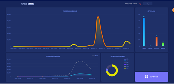 行为统计模块:云访问安全代理(CASB)内置行为统计模块记录了组织内每一位云的使用者的访问行为及上传下载的行为