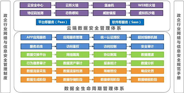 ◆ 数据防泄漏基于终端、网络与边界的数据安全管控;数据由生产到销毁的数据全生命周期的安全防护。
