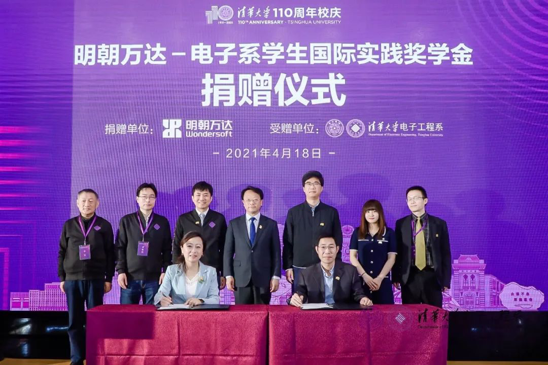 4月18日,明朝万达-清华大学“电子系学生国际实践奖学金”捐赠仪式在清华大学举行。