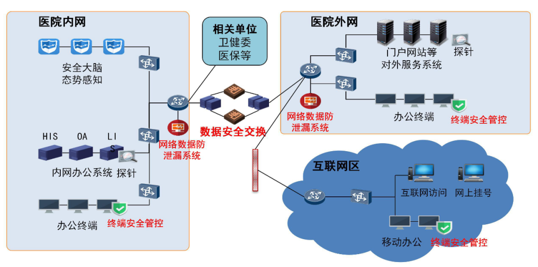 2020年12月14日,国家市场监督管理总局与国家标准化管理委员会正式发布了《信息安全技术 健康医疗数据安全指南》(GB/T 39725-2020)(以下简称“安全指南”),自2021年7月1日起实施。明确定义了健康医疗数据,并制定了数据分类体系、使用披露原则、安全措施要点、安全管理指南、安全技术指南以及典型场景。据威瑞森《2021年数据泄漏调查报告》显示,85%的数据泄漏涉及人的因素。而从以上实际发生的数据泄漏事件也可以佐证此观点,因此针对医疗行业的数据安全保护方案,必须要将“内部人员”这一环节纳入其中。作为专业信息安全厂商,明朝万达基于医疗行业数据安全合规要求,从医疗行业实际业务场景出发,贴合医院系统应用流程,提出了一套围绕医疗行业数据全生命周期的DLP数据防泄漏解决方案,有效帮助医疗行业实现数据的动态安全管控。