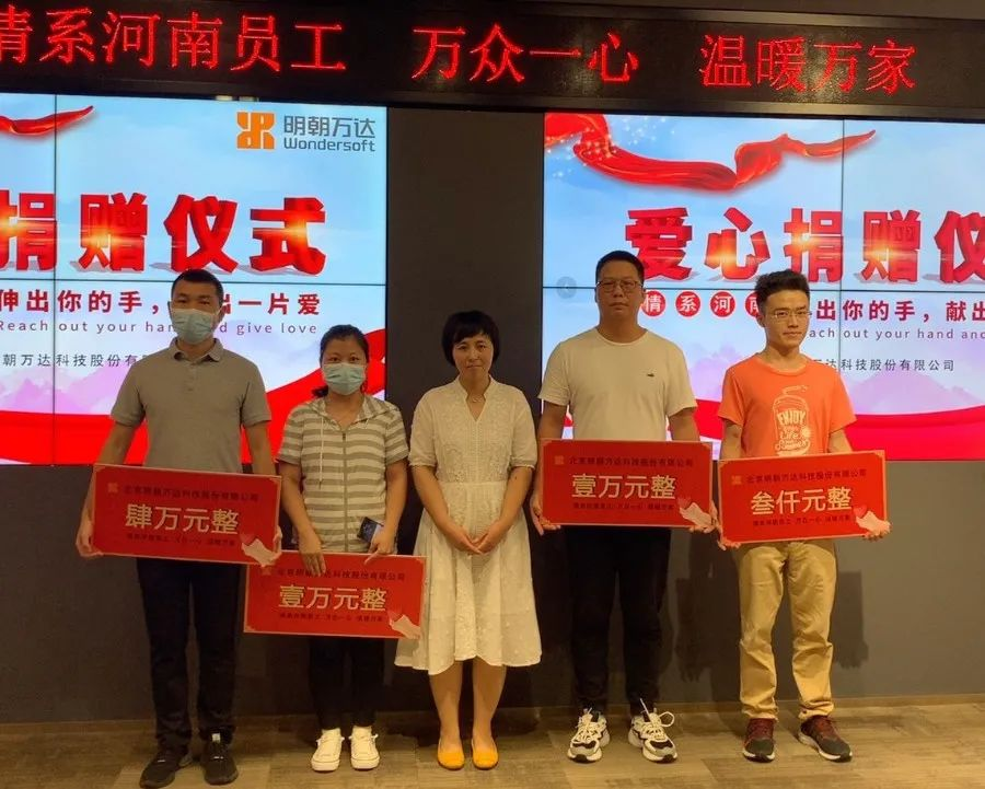 7月中旬以来,河南中北部地区出现百年不遇的强降雨,郑州等地遭受严重洪涝灾害。明朝万达心系灾情,关心家在河南受灾地区的同事们,在公司内部发起“情系河南员工”的赈灾捐款活动。
