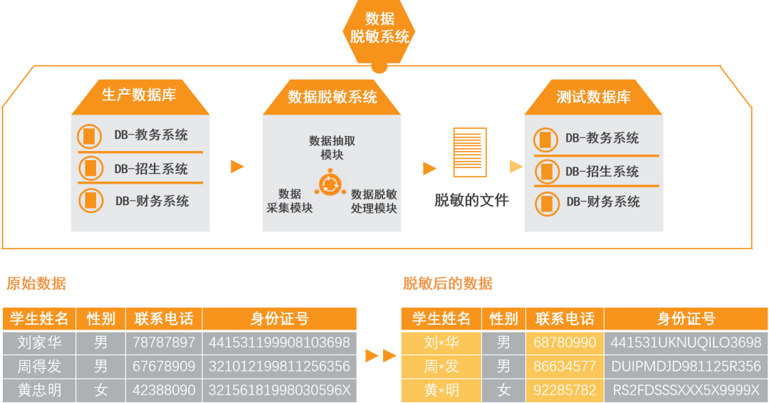 加强网络数据防泄漏防护,对网络中传输的敏感信息进行安全审计和管控,利用关键字、正则表达式、文件指纹、自然语言处理等规则,对高校外发数据进行解析与扫描,实时识别、监控、保护高校敏感数据。对即将发生、正在发生的泄漏敏感数据行为按照预置策略及时阻断并告警,防止高校敏感数据传输到校园外部,实现对高校外发敏感数据的可知、可见、可控。其次,针对校园与第三方公司合作开发新系统或新功能,可以使用脱敏数据产品,对数据中的证件号、联系方式、地址等比较敏感的数据进行屏蔽、替换、随机化、加密等处理,防止真实数据泄漏。此外,校内人员使用数据时,比如学校师生在项目、科研实验中需要调用到学校的人员信息数据,教务处或信息中心等部门需要授权相关的数据信息,可通过走校园内部审批流程进行申请,最终分管校长审批通过,才能使用数据,保证数据在校园内部使用的合规性。