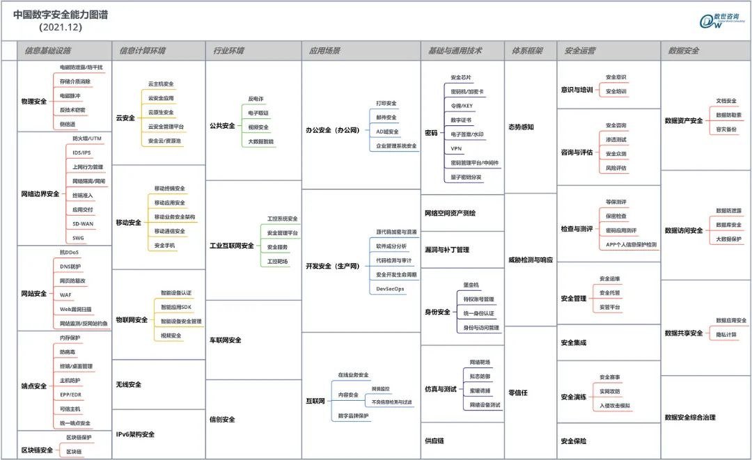 近日,国内数字产业第三方调研与咨询机构数世咨询正式发布了《2021年度中国数字安全能力图谱(完全版)》(以下简称能力图谱)。