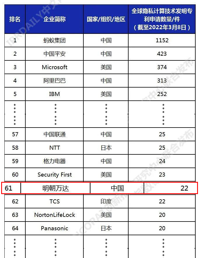 近日,全球知识产权综合信息服务提供商IPRdaily与incoPat创新指数研究中心联合发布《全球隐私计算技术发明专利排行榜(TOP100)》。