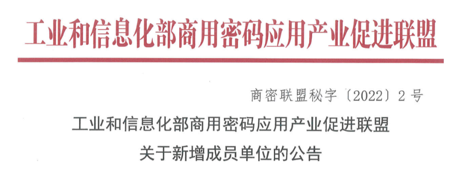 近日,工业和信息化部商用密码应用产业促进联盟(以下简称“联盟”)发布了关于新增成员单位的公告。其中,明朝万达凭借对商用的深入研究与探索,以及在信息安全领域丰富的实践经验,成为联盟成员单位。
