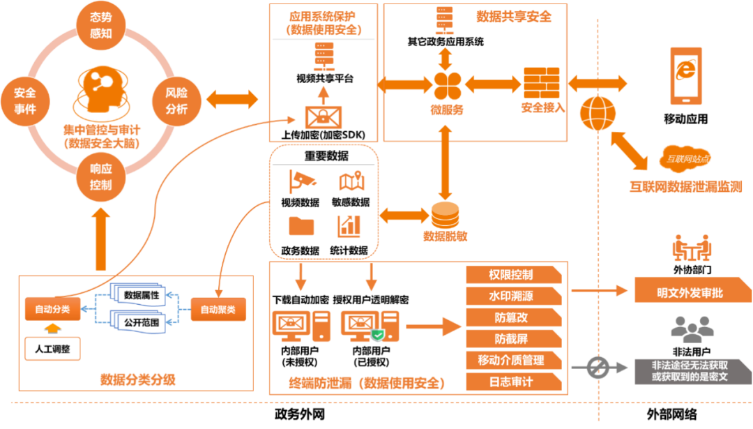 作为中国数据安全领域领先品牌,明朝万达认为对视频数据的安全保护,需在数据分类分级的基础上,构建数据的存储安全、使用安全、共享安全等安全能力,确保数据在使用、流转和存储过程中的完整性、真实性、保密性。通过构建视频数据共享交换安全平台,实现公安和其他政府部门、社会面视频资源的联网应用,构建政府部门间视频安全共享应用的体系和机制,提升视频图像信息的联网应用。