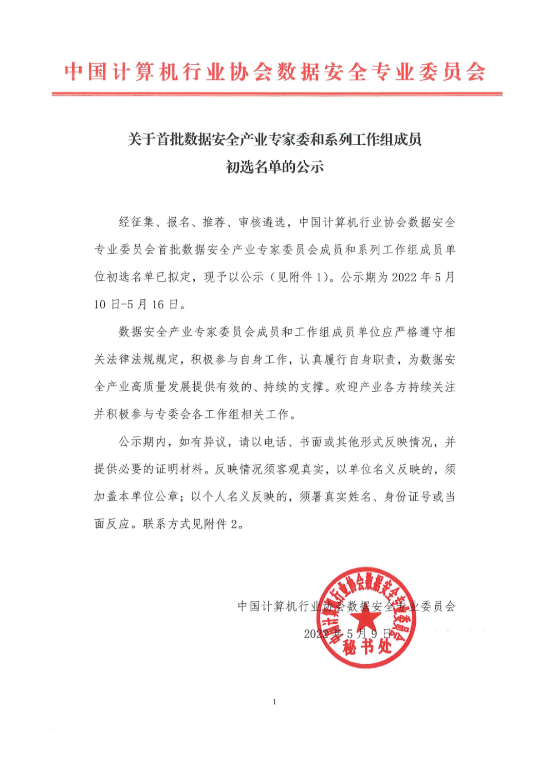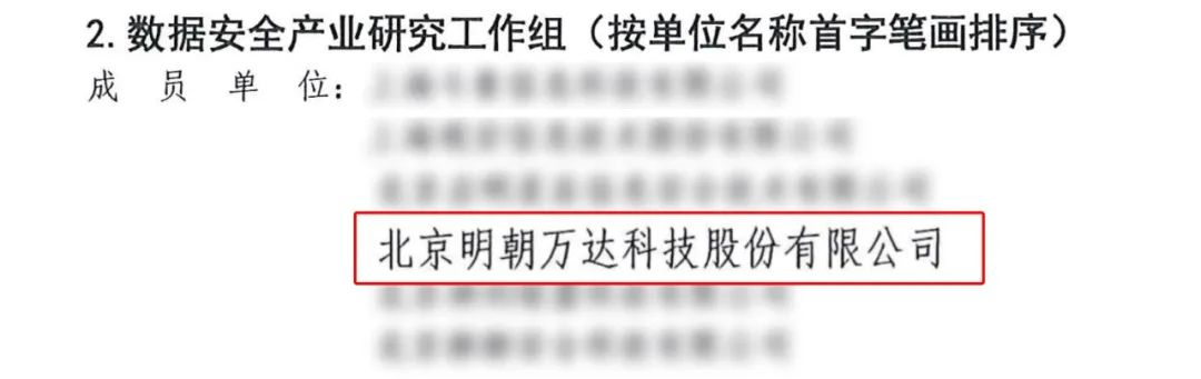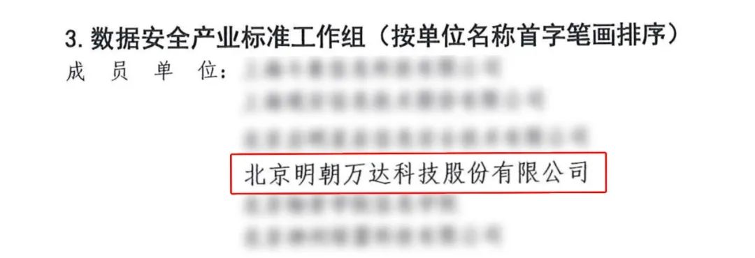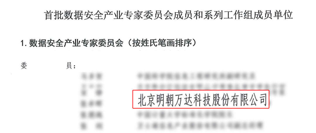 经征集、报名、推荐、审核遴选,北京明朝万达科技股份有限公司凭借在数据安全领域的卓越表现,成功入选数专委数据安全产业研究工作组、产业标准工作组、产业成果转化工作组、专家委员会首批成员。