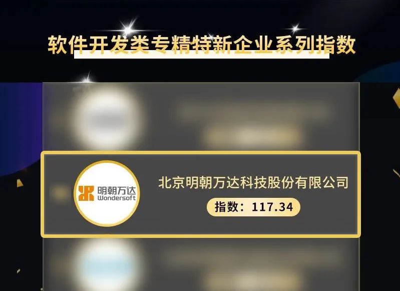 明朝万达上榜“专精特新软件开发类企业实力指数”