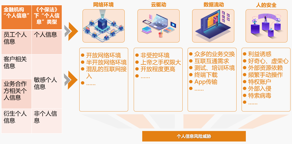 随着新技术、新业务、新场景的不断涌现,个人金融信息在不同系统、产品、业务环节中快速流转,数据安全和个人金融信息保护管理策略逐渐由“以系统为中心”向“以数据为中心”转变。