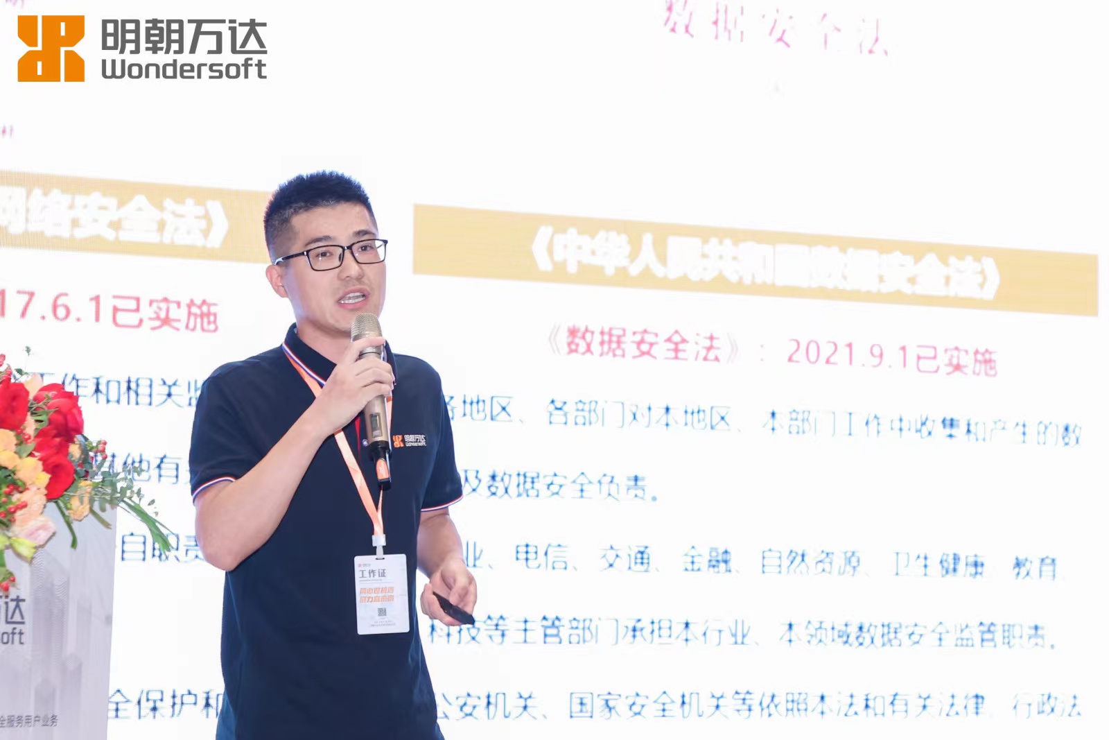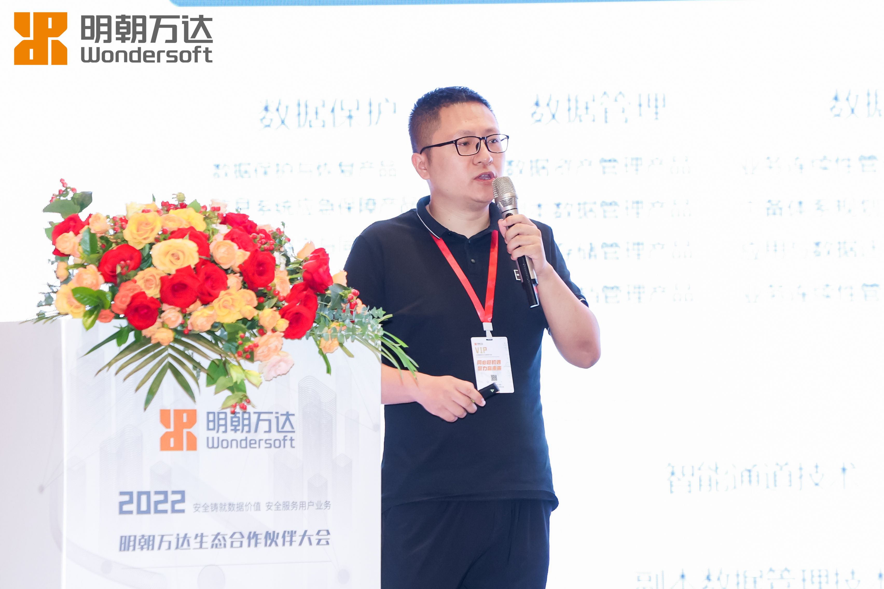 近年来,我国在数据治理方面的政策与条例不断出台,立法体系不断完善,对于数据安全的监管力度也逐渐加大,这促使各行各业对数据安全越来越重视,并开始建设企业的数据安全防护体系。会上,明朝万达业务创新中心副总经理张卓晖从数据安全咨询服务、数据安全能力建设、数据安全运营三大体系模块介绍了数据安全建设思路,分享金融、公安、运营商、政企等优势行业的解决方案,并逐一对明朝万达具有代表性的数据安全产品进行详细介绍。