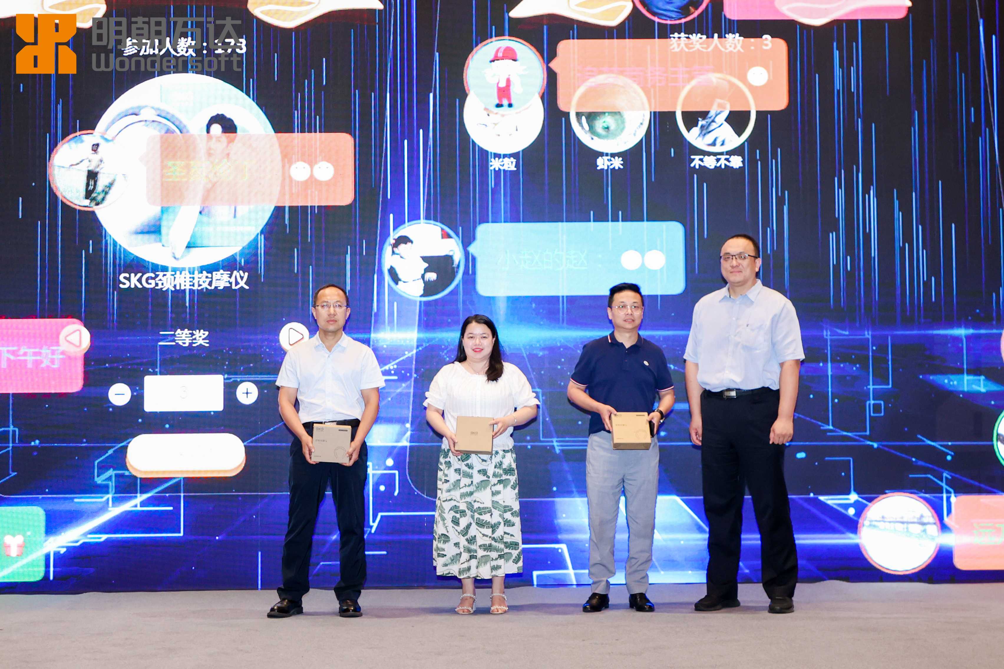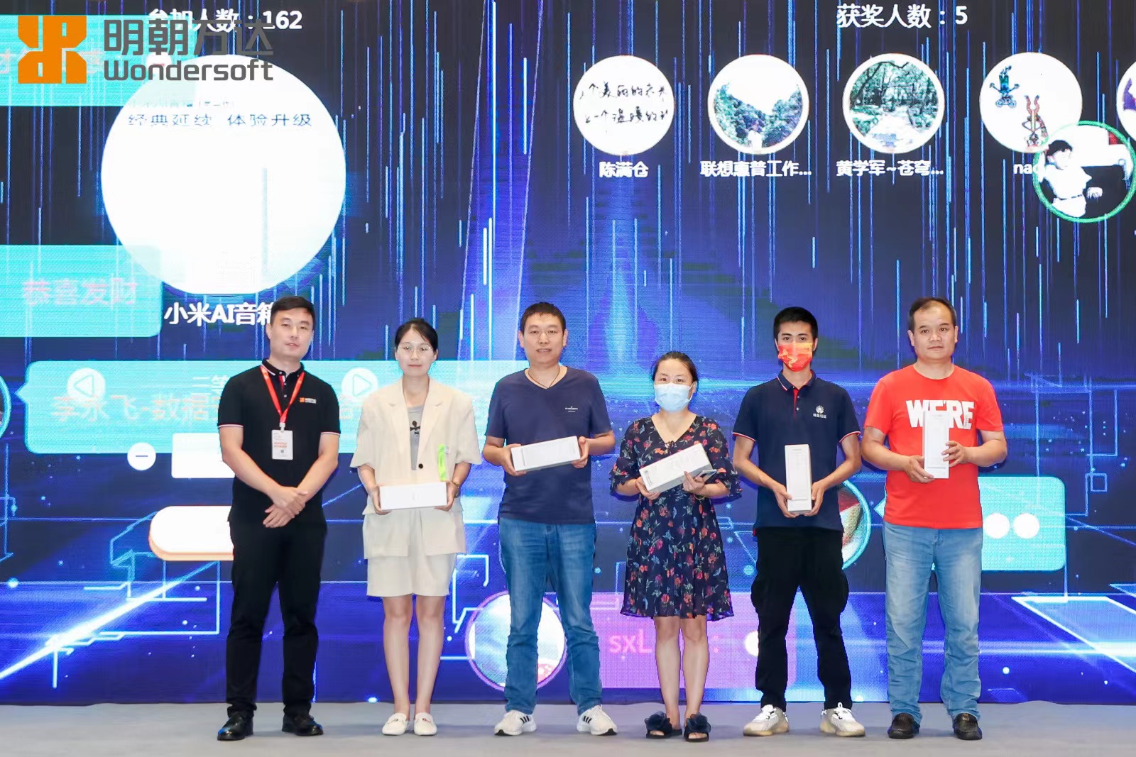 会议最后,明朝万达董事长兼总裁王志海、明朝万达渠道生态合作事业部总经理曲彦儒、副总经理张程为15家战略、生态合作伙伴颁发授权牌并合影留念。
