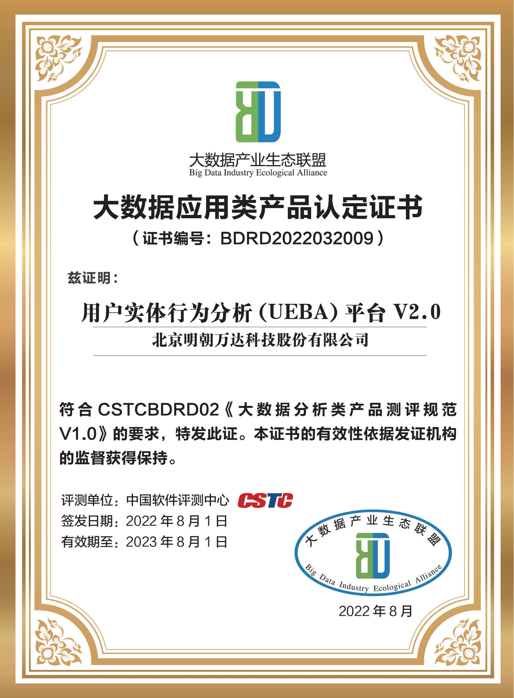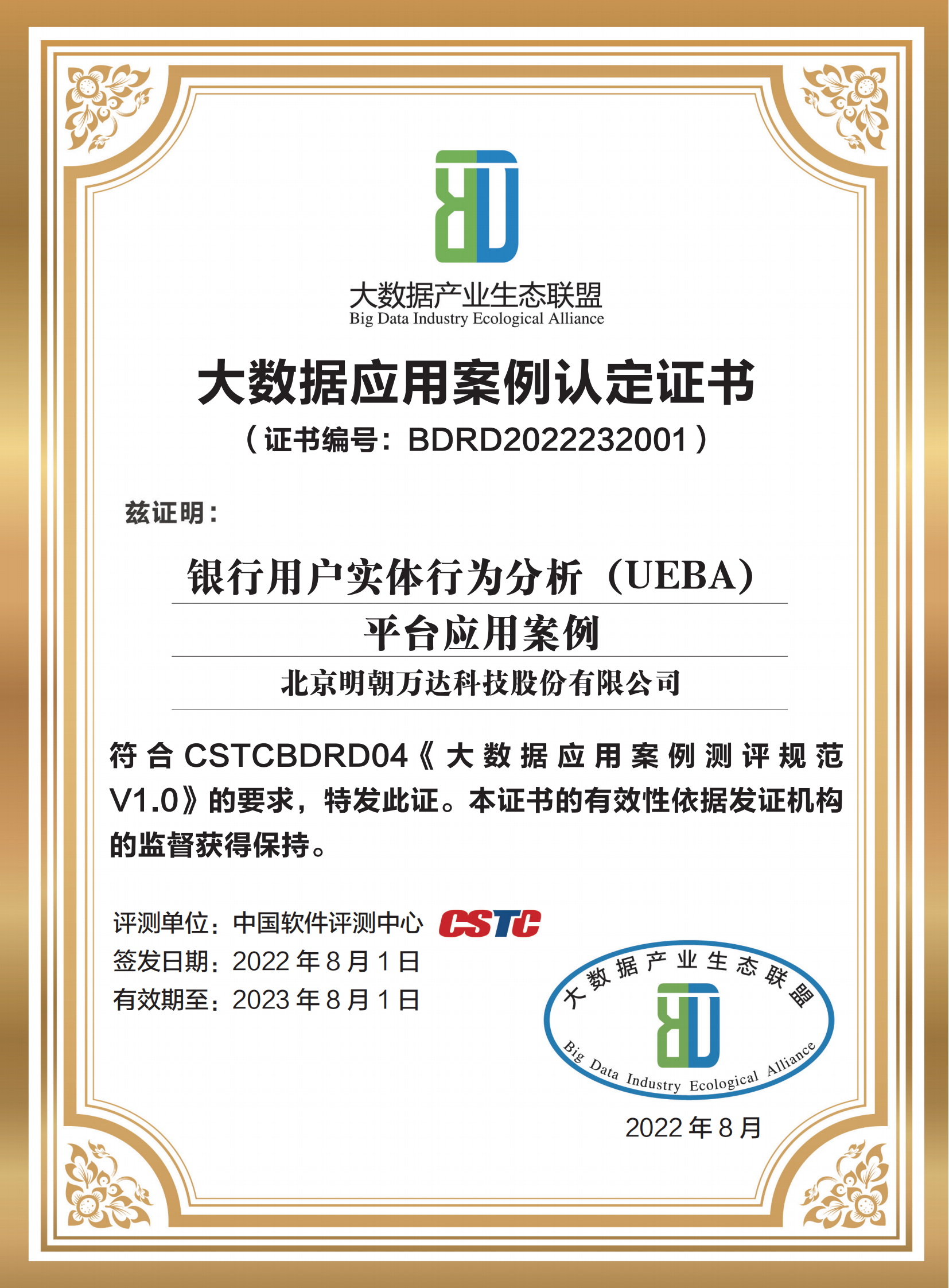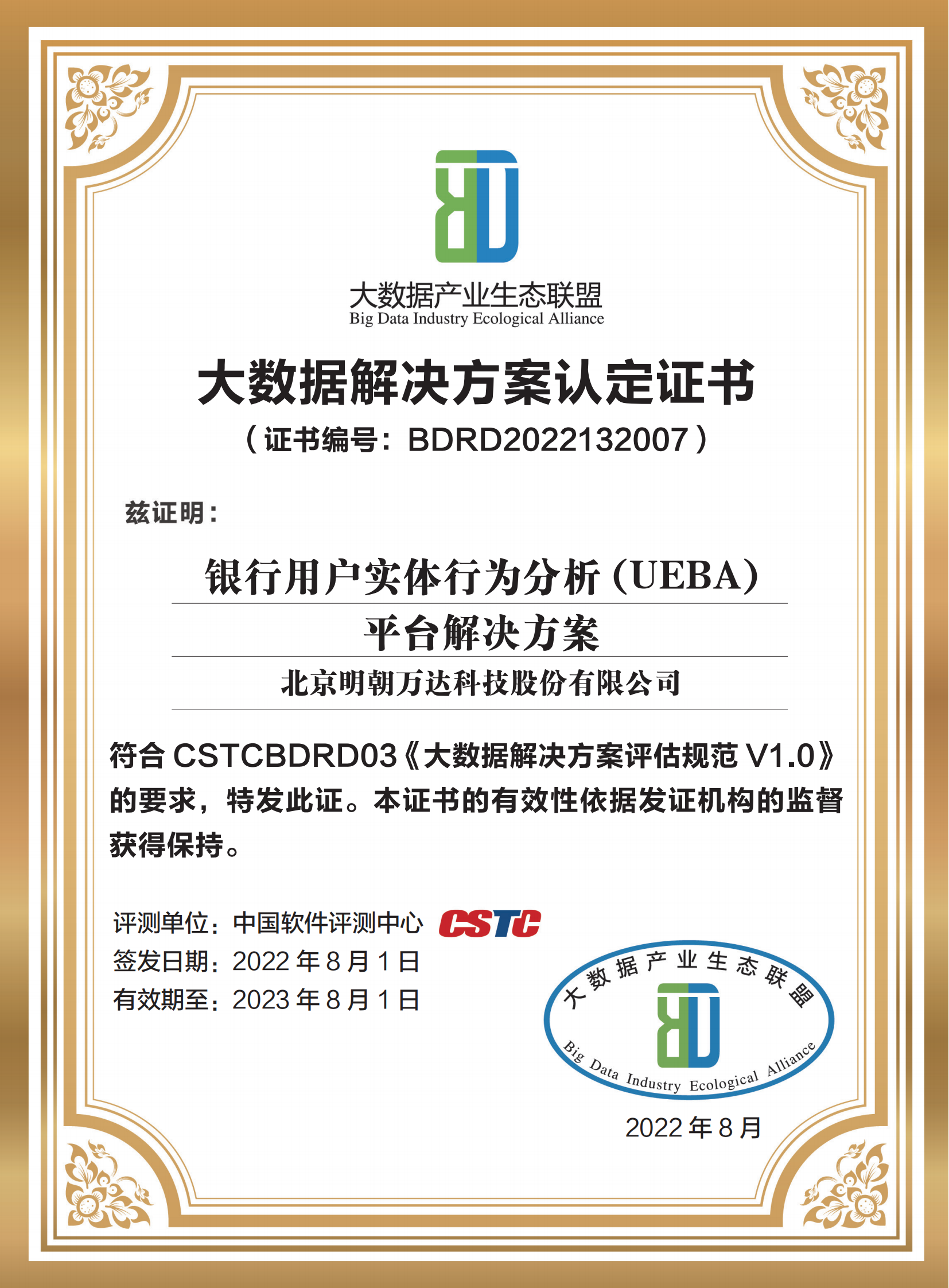 明朝万达通过“优秀大数据产品、解决方案与应用案例征集及专题测评”