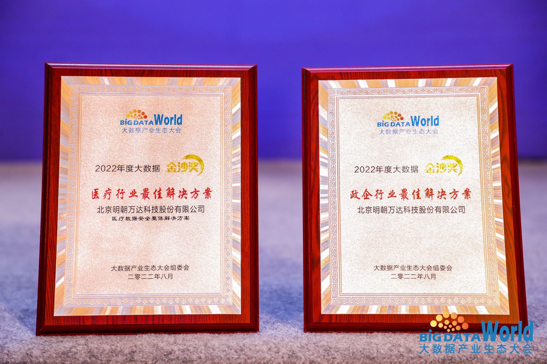 明朝万达作为国内数据安全市场的倡导者,在本届大会上斩获了 “2022中国大数据企业50强”、“2022数字赋能先锋企业30强”、“2022信创产业明星企业”、“2022中国大数据金沙奖” 等多项大奖,入选了“优秀大数据产品、解决方案、应用案例”。明朝万达董事长兼总裁王志海荣获“2022中国数据英雄”称号。