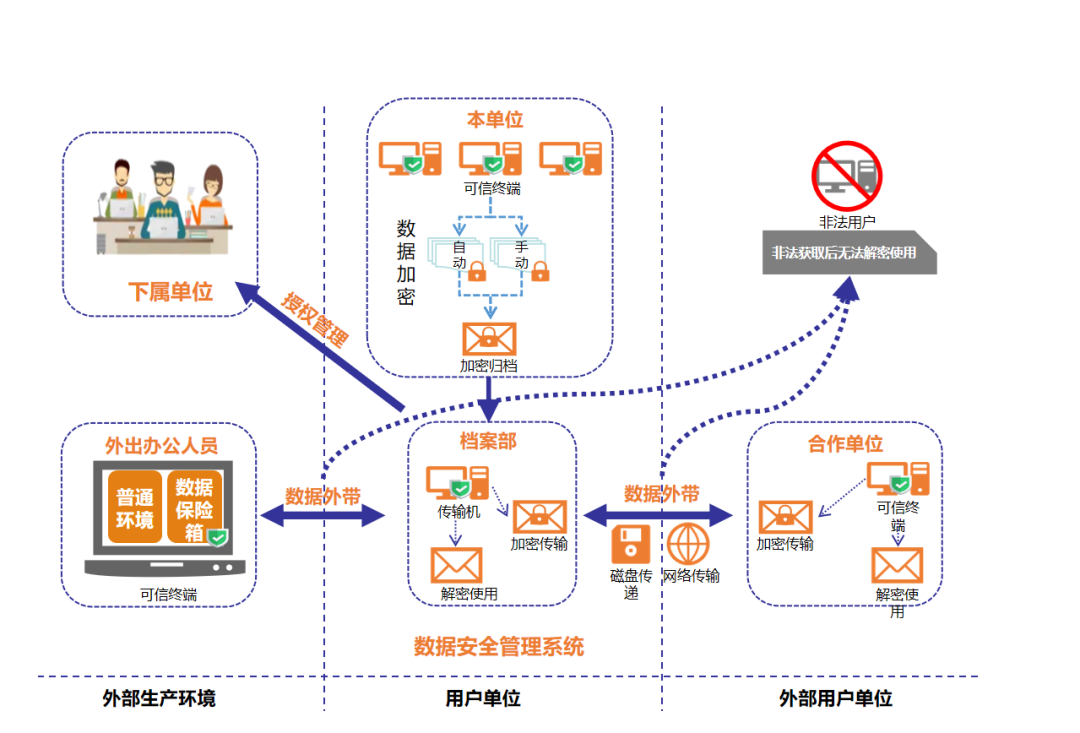 数字经济时代,信息化进程不断加快,政企机构产生和存储的数据量级前所未见,而在线上办公逐渐常态化后,数据共享、异地(多方)使用需求越来越迫切。基于以上原因,容量大、体积小、操作简单的移动存储设备、便携终端(移动硬盘、笔记本电脑等)得到广泛使用,成为了当前数据交换的重要载体,但也由此产生了极大的安全隐患。