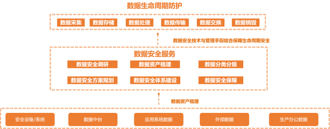 本方案以数据安全治理为驱动,以数据安全现状调研为基础,进行电力行业数据分类分级,数据安全体系建设、数据安全保障等服务,通过调研、梳理规划数据安全整体方案,构建完善的数据安全体系;以数据全生命周期防护为核心,立足数据的完整生命周期做安全防护;以技术产品为支撑,利用数据大脑为核心的各类安全产品做到全方面的数据安全保护。从服务到产品到整体防护构建完整的数据安全保护体系。