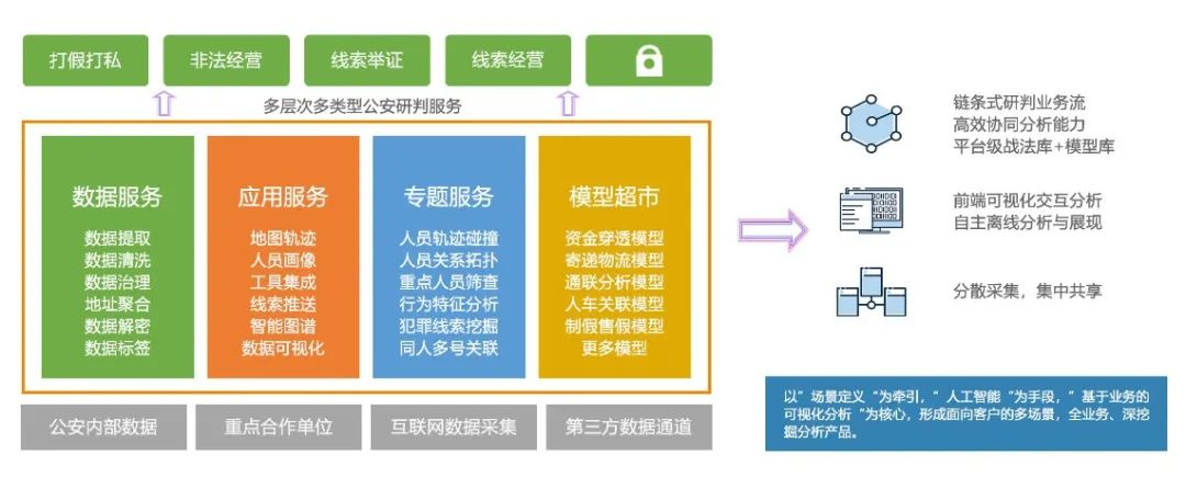 在烟警线索协同基础上,各自具备从线索挖掘到立案侦查全流程;纵向省市县分级授权,优化线索上报流程,提升线索时效性;横向各地市联合作战,“小案并大案”,提升线索挖掘/案件侦查的实战效率。